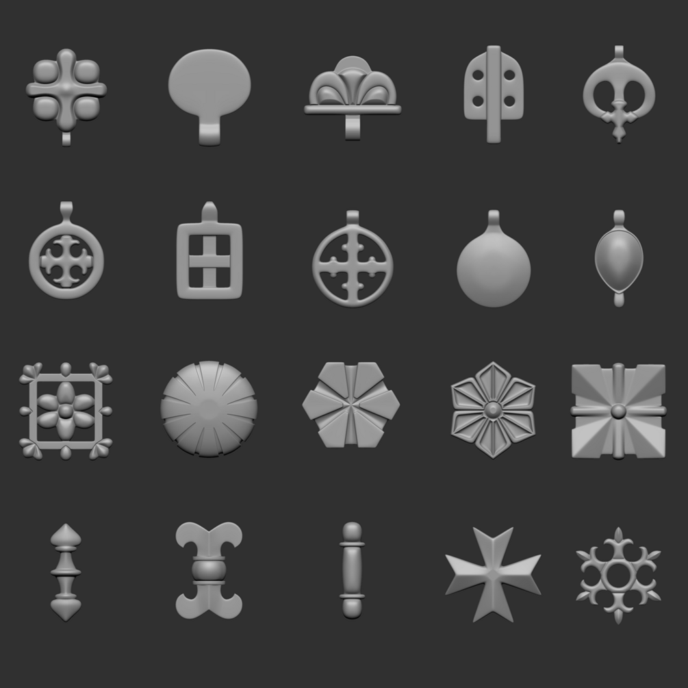 A collection of 20 different belt mounts in one IMM brush for zBrush